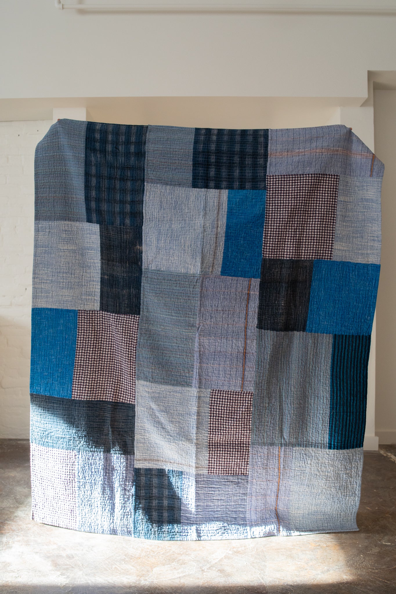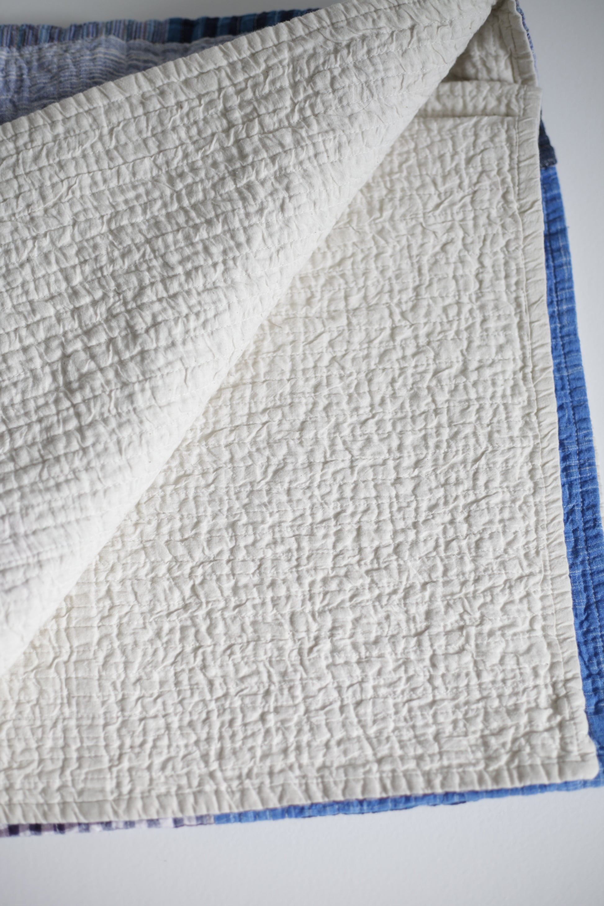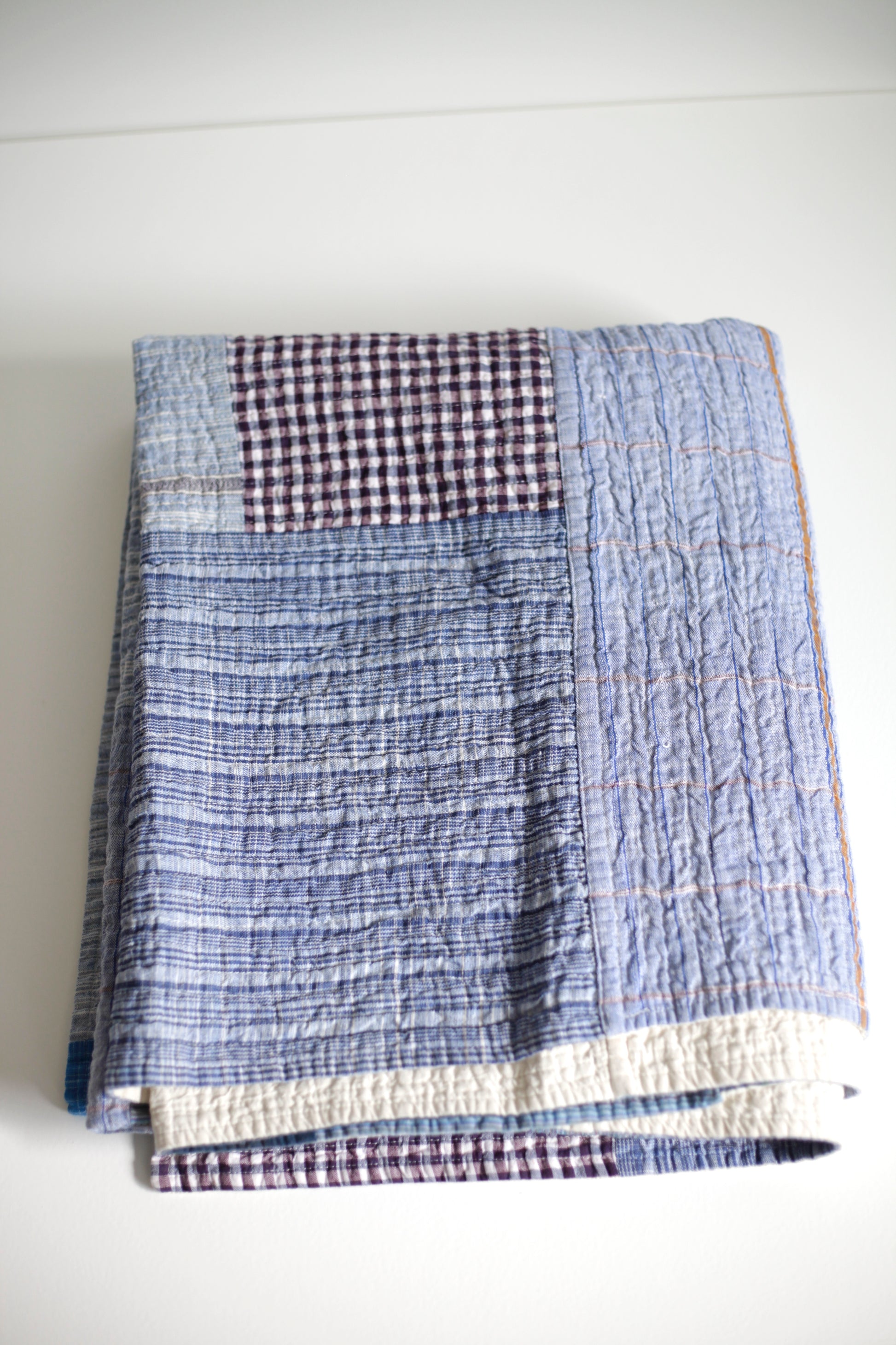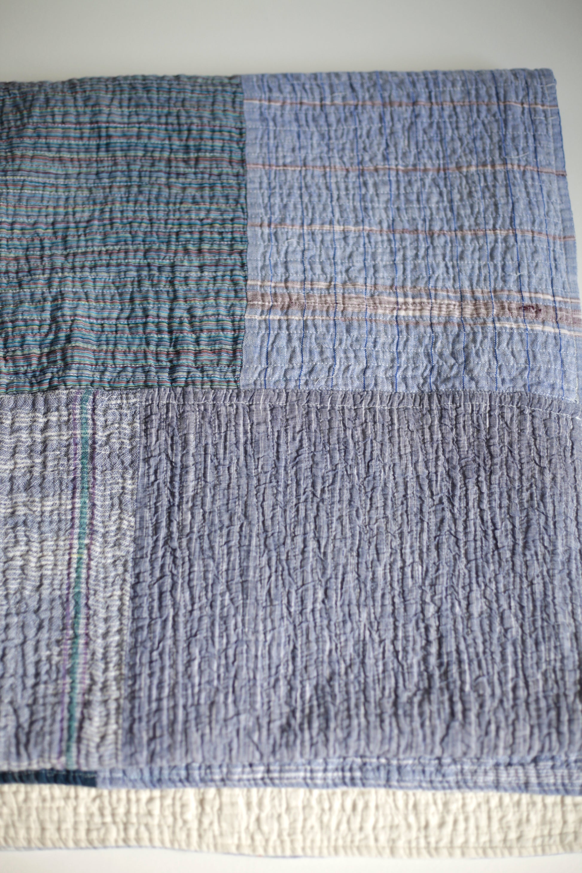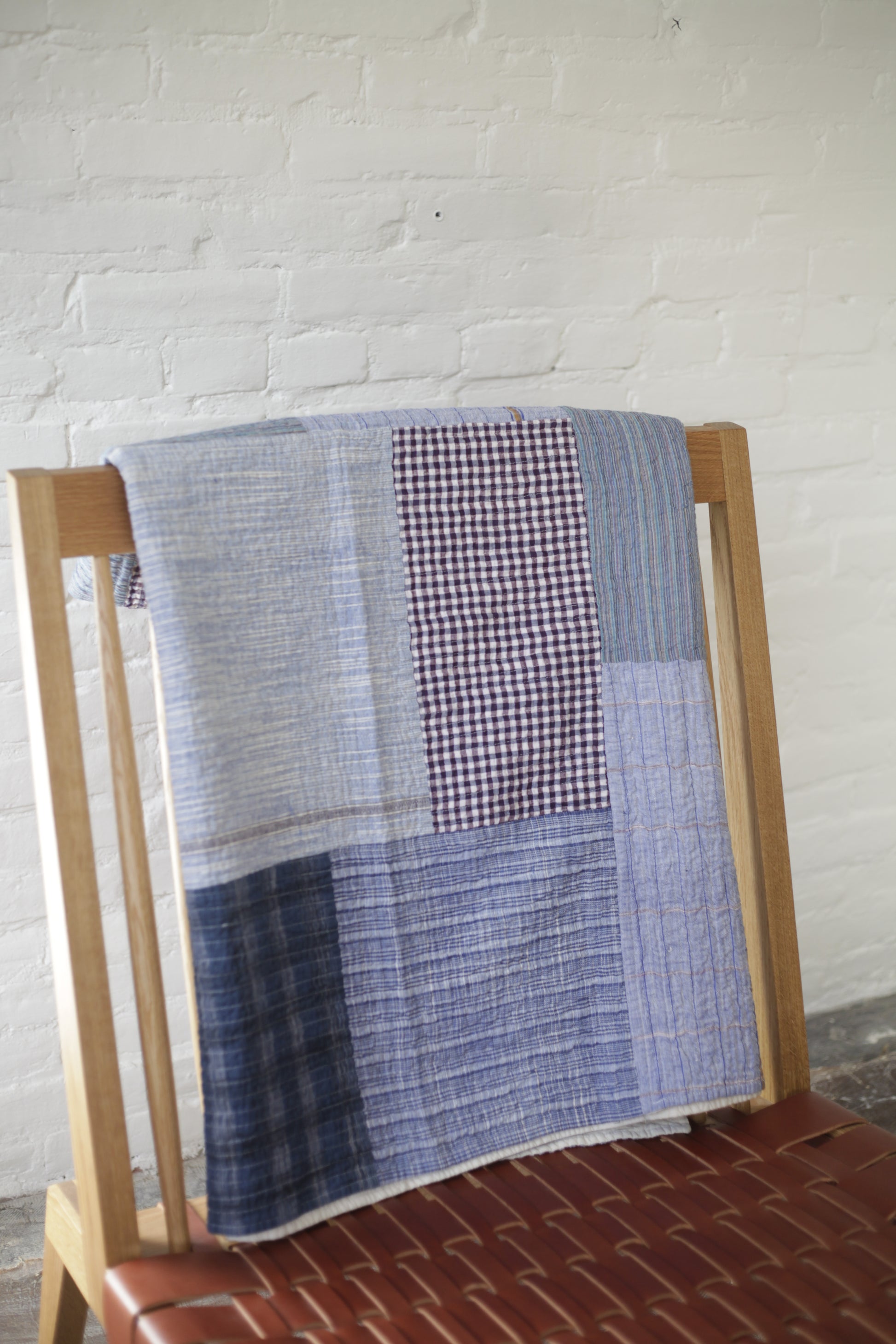 A modern heirloom piece, inspired by traditional Amish quilts made from textile scraps, this patchwork top quilt is made from tonal remnants of 100% cotton khadi, loomed and sewn in India. Backed with unbleached 100% soft cotton khadi. Line dry recommended.