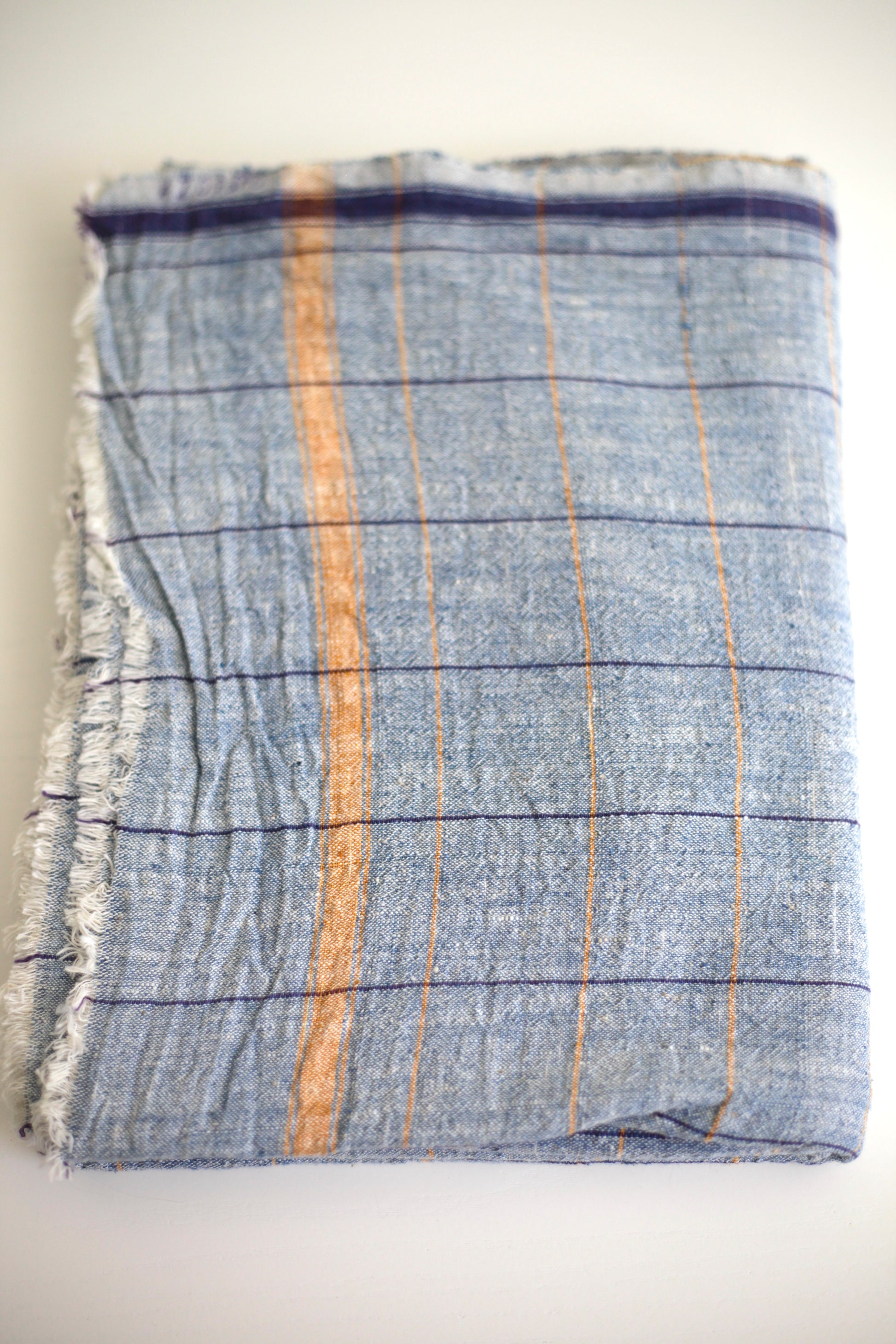 Multi-use textile made from 100% hand spun, yarn dyed cotton. Use as a towel, small tablecloth, beach blanket, etc. Made in India. No two are exactly alike. Cold wash and line dry recommended. Shown in first photo, top to bottom: Terracotta, Blue + Yellow, Blue + White.