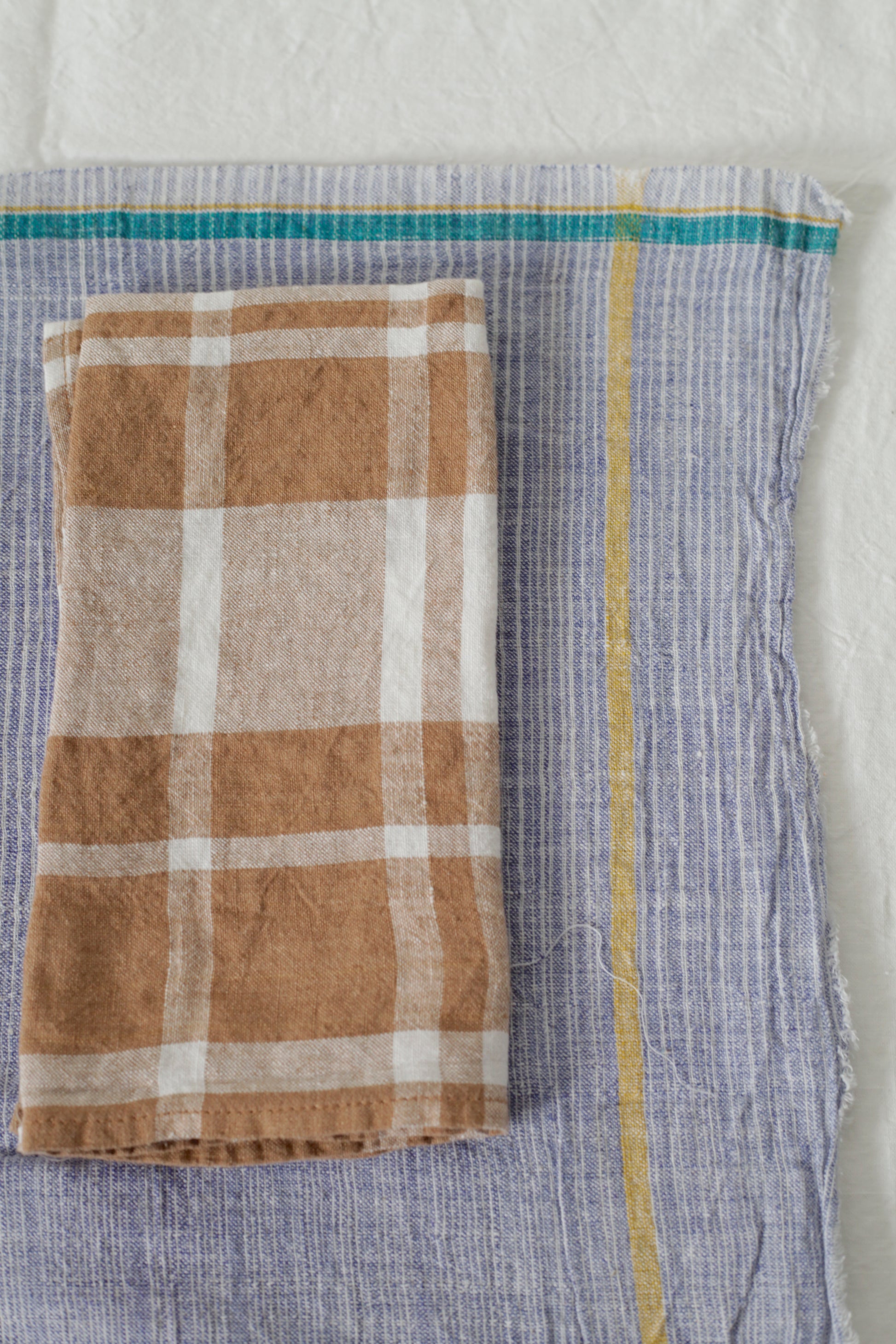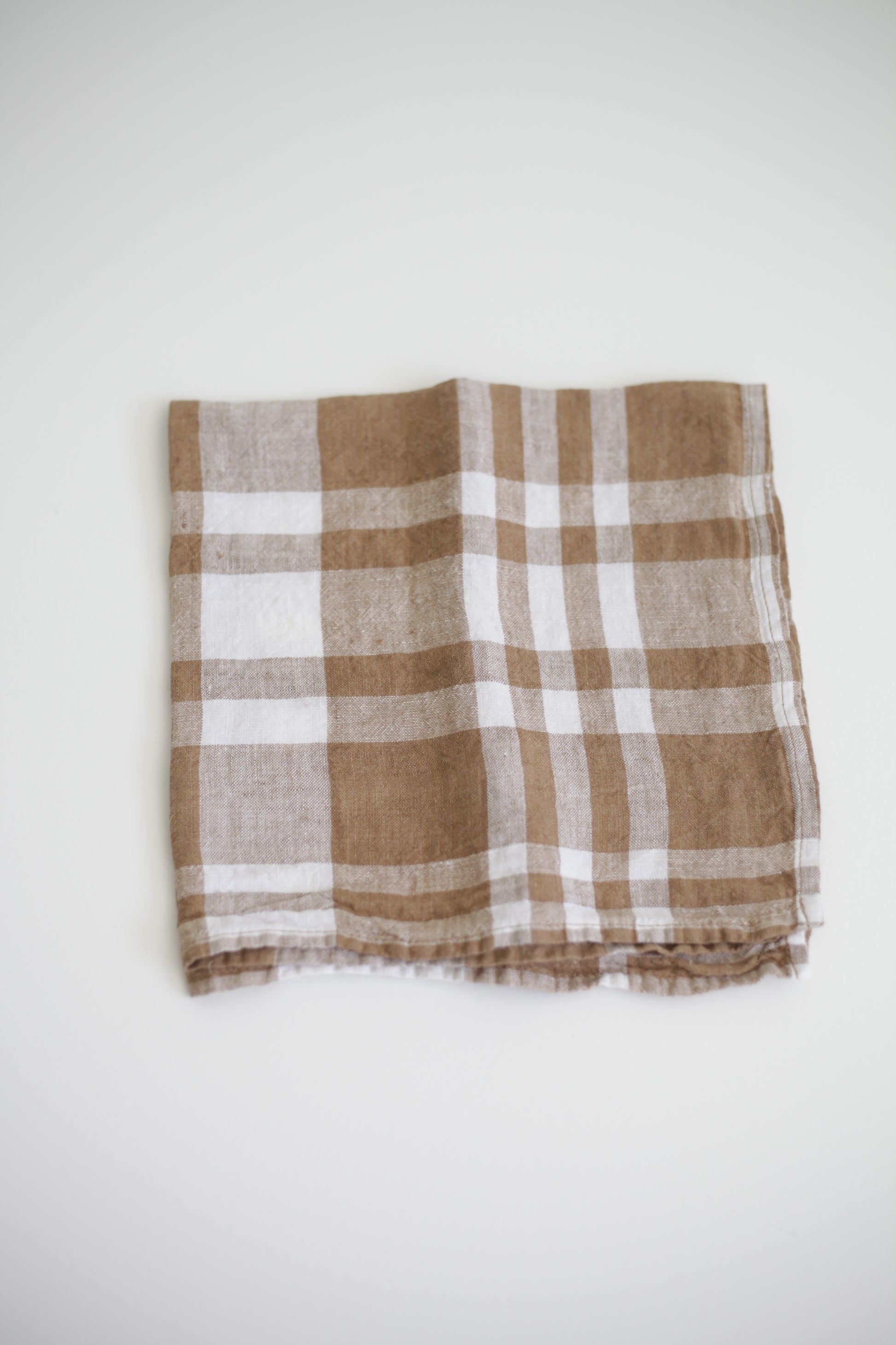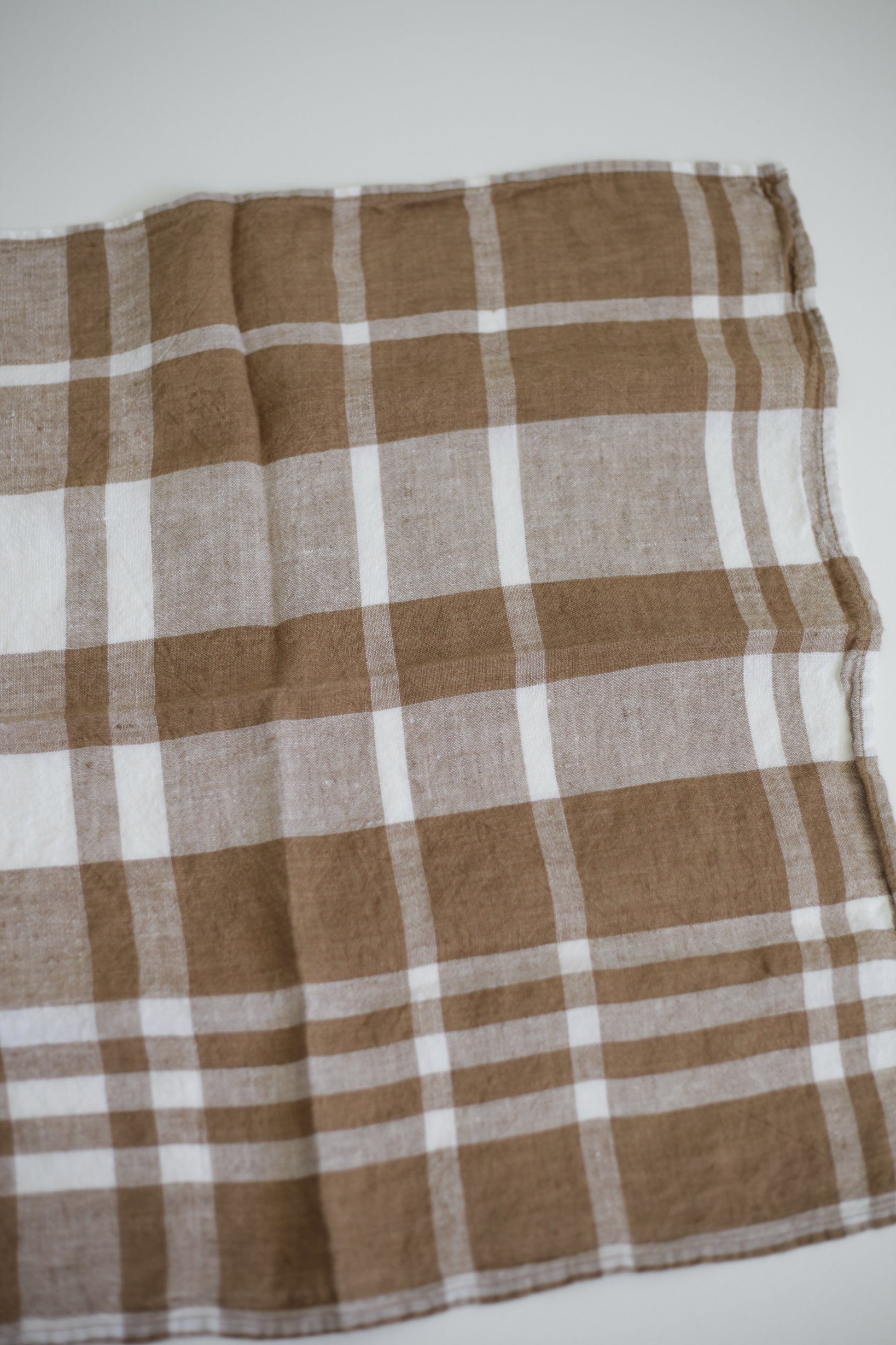 Washed Linen Napkin Coffee Plaid