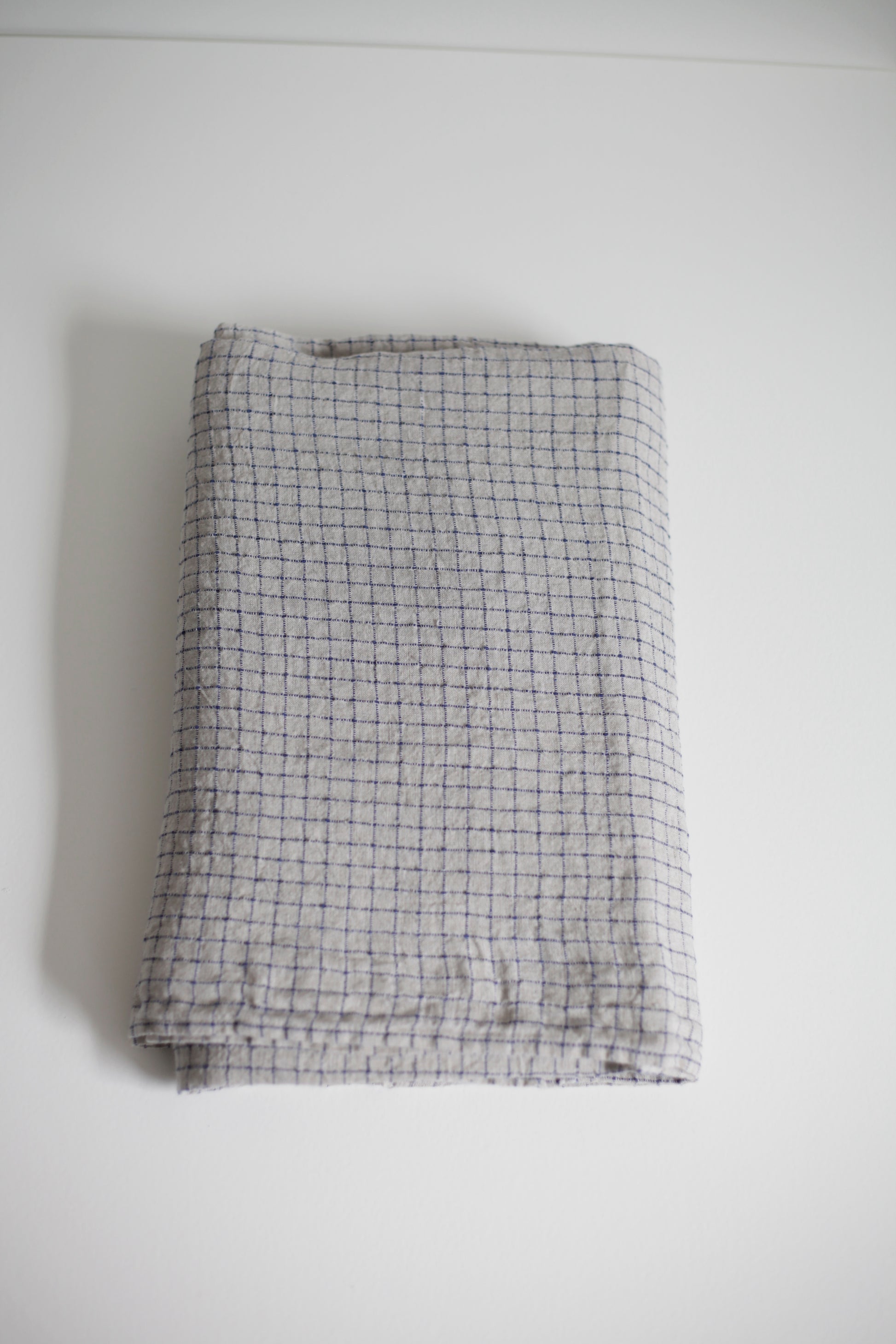 Washed Linen Tablecloth Grey and Blue Checks